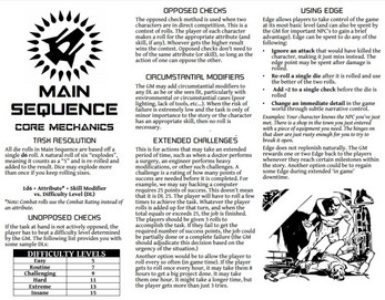 MAIN SEQUENCE characters have three Attributes (Soldier, Agent and Tech). They choose a handful of skills and Tags, some equipment, and then they’re off on their planetary adventures! Folks who are wanting a traditional space RPG with a little meat on the bone, but don’t want to be bogged down with bloated catalogs of tech or complex space battles will be at home in MAIN SEQUENCE.